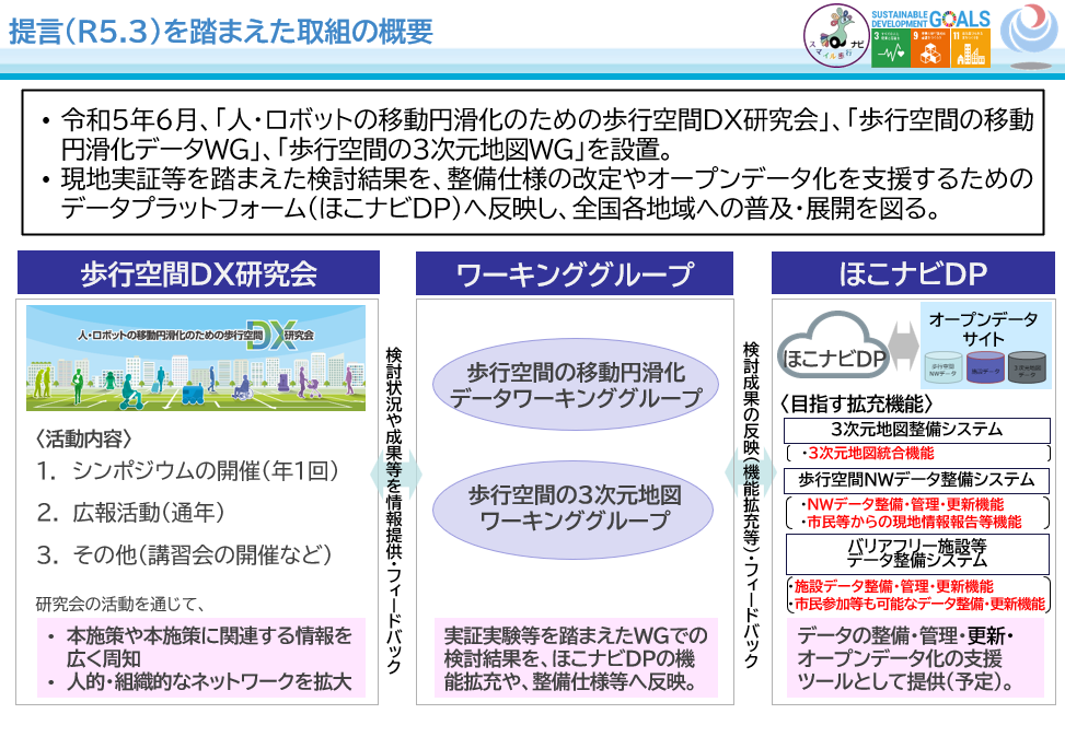 このプロジェクトは、そうしたバリア情報を含む「歩行空間ネットワークデータ」を全国で整備し、オープンデータ化することで、民間事業者などが多様なバリアフリーナビゲーションサービスを開発できる環境を構築することを目的としています。さらに、近年では人だけでなく自動配送ロボットの公道走行も始まるなど、歩行空間のニーズは多様化しています。